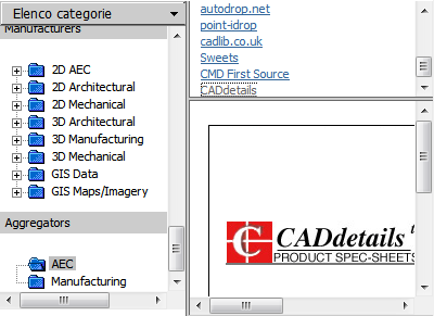 Per scaricare contenuto dal Web, individuare la cartella che contiene il contenuto da utilizzare. Fare clic, quindi, su un'immagine ridotta del contenuto nell'area contenuto. Il contenuto verrà visualizzato nell'area di anteprima, unitamente alle relative informazioni. È possibile trascinare il blocco direttamente dall'area di anteprima ad un disegno o una tavolozza degli strumenti oppure salvarlo nel computer locale e utilizzarlo in seguito.