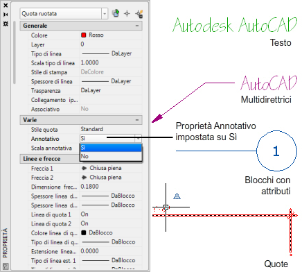 Gli oggetti di annotazione includono quote, note e altri tipi di oggetti o simboli descrittivi comunemente utilizzati per aggiungere informazioni al disegno.