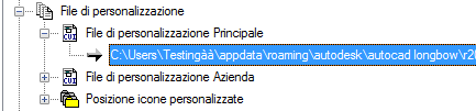 1. In Esplora risorse o Esplora file, spostarsi in <unità>:\Utenti\<nome profilo utente>\AppData\Roaming\Autodesk\<nome prodotto>\<numero release>\<lingua>\support\<nome file personalizzazione>.cuix.