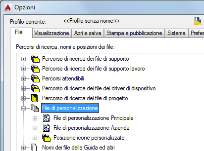 2. Nella scheda File della finestra di dialogo Opzioni, fare clic sul segno più (+) accanto a File di personalizzazione per espandere il nodo.