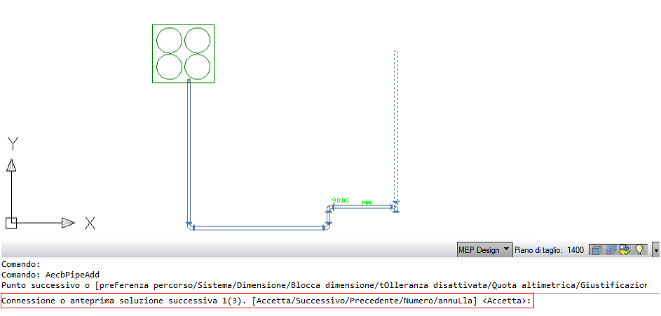 Suggerimento: Se si sta collegando un oggetto con una dimensione tubo diversa o una preferenza percorso diversa, verrà richiesto di scegliere una parte da connettere al secondo oggetto.