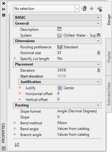 Per default, le proprietà di base sono visualizzate nel riquadro proprietà per i tubi.