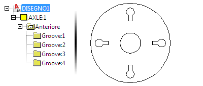 In questo esempio, la cartella Groove:1 contiene la scanalatura superiore ed è stata riprodotta in serie per creare le altre scanalature. Trattandosi di cartelle associative, la modifica di una scanalatura determina la modifica di tutte le scanalature.