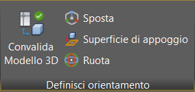 - La scheda Definisci orientamento nella barra multifunzione diviene attiva e rende disponibili i comandi Sposta e Ruota, per consentire di modificare l'orientamento del modello facendolo corrispondere a quello del blocco.