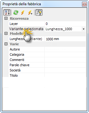 nella parte superiore del browser Proprietà della fabbrica per attivare il nome della variante del parametro del modello.