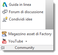 I siti in linea di social media forniscono ulteriori opportunità di apprendimento tramite video o testi. È possibile estrarre gli argomenti di YouTube, Facebook o Twitter di interesse direttamente dal gruppo Community di Factory Design Utilities.