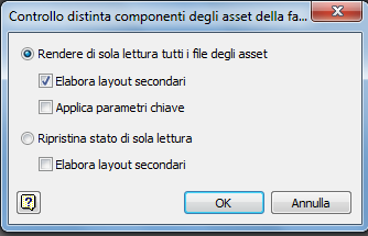 Tuttavia, se si fa clic sul comando "Controllo asset", si seleziona "Reimposta tutti i file degli asset nello stato di sola lettura", quindi si sceglie OK, viene visualizzata la seguente finestra di dialogo: