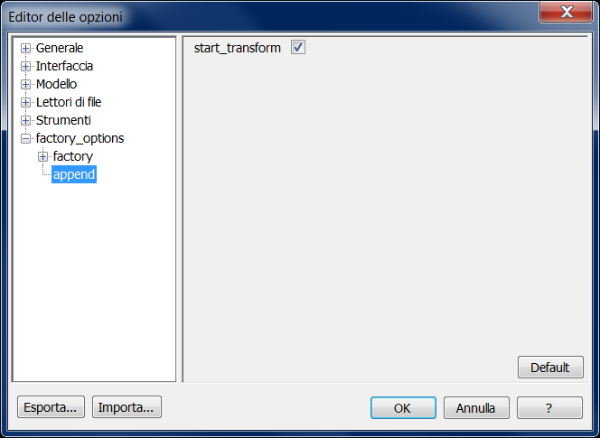 Per evitare tale situazione, selezionare Append File nella finestra di dialogo Editor delle opzioni di Navisworks e selezionare la casella di controllo Avvia il comando Trasforma dopo l'aggiunta del file mostrata di seguito:
