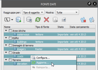 - Aggiornare le fonti di dati selezionate dal menu di scelta rapida, oppure fare clic su