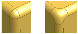 Usare un aspetto vertice del raccordo per definire le transazioni a tangente continua tra raccordi su spigoli intersecanti. È possibile specificare un aspetto vertice diverso per ogni spigolo di un'intersezione.