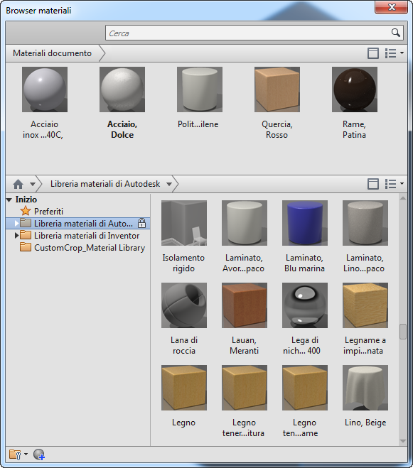 La libreria di aspetti Autodesk installata con un prodotto o con una suite fornisce una vasta gamma di asset di aspetto. Prodotti come AutoCAD, Inventor e Revit condividono questa libreria di sola lettura per garantire un'esperienza di visualizzazione più coerente tra i prodotti.