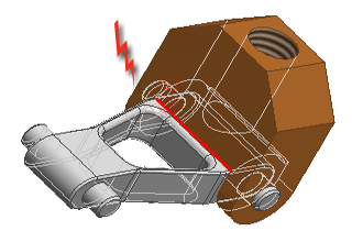 Usare il rilevamento della collisione durante l'animazione di vincoli per identificare i componenti posizionati in modo errato. Applicare i vincoli per posizionare i componenti come desiderato, quindi animare i vincoli per simulare il movimento meccanico. Se i componenti entrano in collisione, viene visualizzato un messaggio e i componenti interessati vengono evidenziati nel browser.