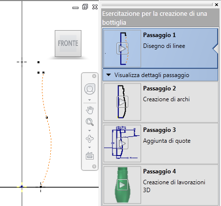 Panoramica o Nozioni fondamentali. Un percorso formativo personalizzato, in un ambiente di apprendimento interattivo, consente di iniziare a lavorare. Le esercitazioni interattive includono video passo per passo, testo di supporto e richiami sullo sfondo collegati al testo. Vengono eseguite nella finestra di Inventor.
