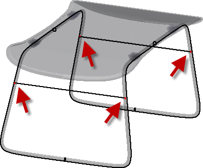 Fare clic su Individua spazi e spigoli liberi rimanenti. Notare che gli spigoli liberi vengono evidenziati in corrispondenza di tutte le posizioni in cui la barra trasversale interseca il supporto.