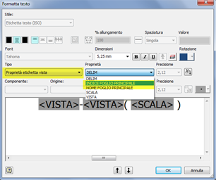 Identificazione del riferimento al foglio associativo della vista di disegno nelle etichette
