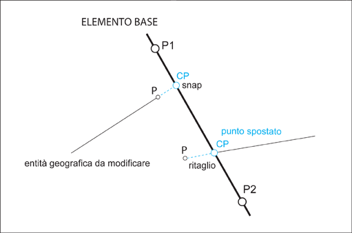 Utilizzare la funzione Snap/ritaglio per l'elaborazione dell'entità geografica linea del modello di settore Enterprise . È possibile ritagliare o estendere una linea in modo che il punto finale si trovi esattamente su una linea base. L'utilizzo di tale funzione è frequente durante la creazione di topologie corrette o per la correzione di un'acquisizione dati non accurata.