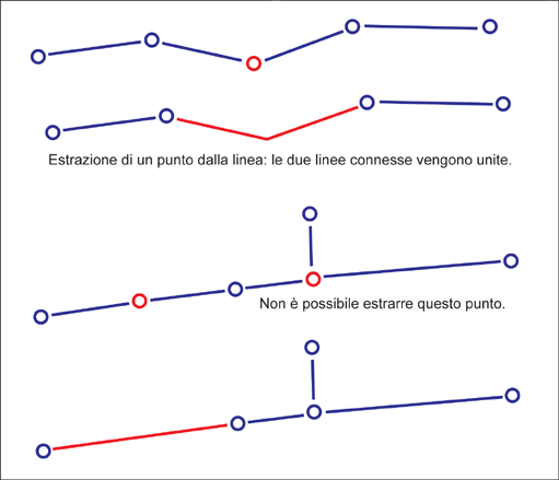 Il punto viene eliminato dal database e le linee precedentemente collegate da tale punto vengono unite.
