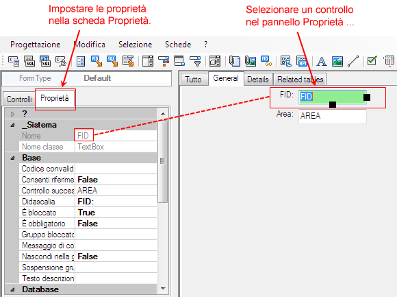 Utilizzare la scheda Proprietà per definire le proprietà di ciascun controllo.