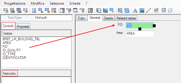 Utilizzare la scheda Controlli per definire gli attributi e i controlli del database da visualizzare nel modulo.