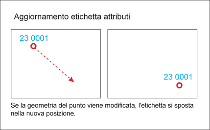 Aggiorna l'etichetta associata ad un attributo quando viene aggiornata la geometria.