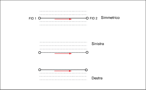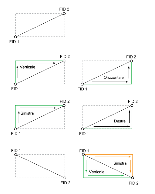 La direzione delle linee fra due punti è derivata dall'IDE. Verrà ad esempio creata una linea dall'IDE 1 all'IDE 2, in senso verticale o orizzontale, la quale verrà disegnata da sinistra o da destra all'entità geografica reale.