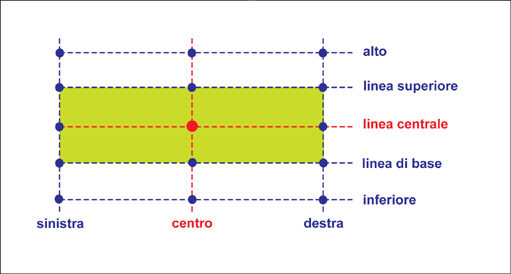 Pertanto, le impostazioni di default dell'allineamento sono Centro e Linea centrale.