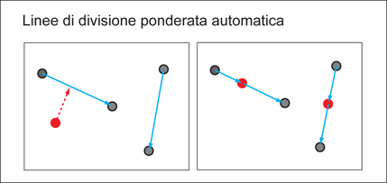 Esegue automaticamente lo snap dei punti verso la linea più vicina e la divide in modo ponderato. |