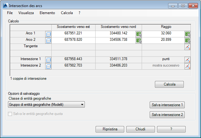 Visualizzare il numero di intersezioni o tangenti per il calcolo. |
