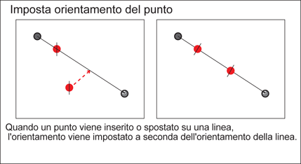 Il gruppo di regole SetPointOrientation consente di specificare la corrispondenza dell'orientamento del punto con quello della linea quando un punto viene inserito o spostato su una linea.