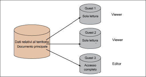 Utente guest: utente Oracle creato mediante Amministratore della sicurezza con il ruolo TBR_guest, che definisce la relazione tra il modello di settore principale e il modello di settore di tipo guest.