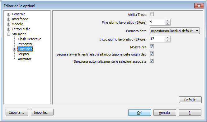 Come impostare le opzioni di TimeLiner