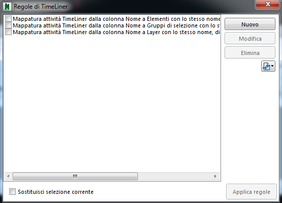 Se per creare il gruppo di iniziale di attività basate sui nomi di layer, elementi o gruppi di selezione si è utilizzata la funzionalità di aggiunta automatica di attività su Scheda Attività, i layer, gli elementi o i gruppi di selezione corrispondenti sono già associati.