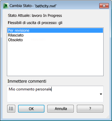 - Immettere i commenti desiderati relativi alla modifica dello stato del ciclo di vita nel campo Immettere commenti o selezionare un commento dall'elenco a discesa.