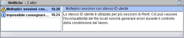 Avviso | La situazione potrebbe causare l'interruzione della condivisione del lavoro o del funzionamento di Worksharing Monitor for Autodesk Revit. Intraprendere le azioni opportune. |