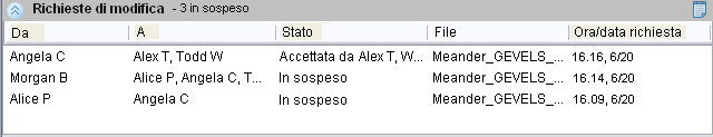 Quando una richiesta viene accettata, negata o ritirata, le relative informazioni vengono trasferite nella cronologia delle richieste di modifica. Se una richiesta viene inviata a più utenti, viene visualizzata nel riquadro Richieste di modifica finché non viene accettata e se nessuno dei destinatari l'ha rifiutata.