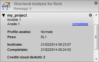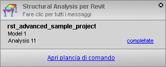 (Structural Analysis for Autodesk Revit) si trova nell'angolo inferiore destro dello schermo, nella barra delle applicazioni del sistema. Posizionare il cursore sull'icona o fare clic con il pulsante sinistro del mouse per visualizzare ulteriori informazioni sulle analisi inviate (vedere Tipi di notifiche di seguito).