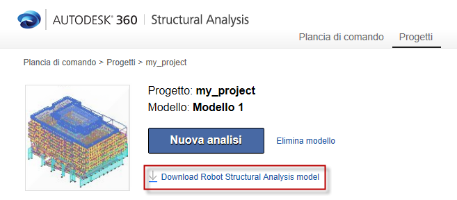 (Scarica modello di Robot Structural Analysis) nella colonna Analisi.