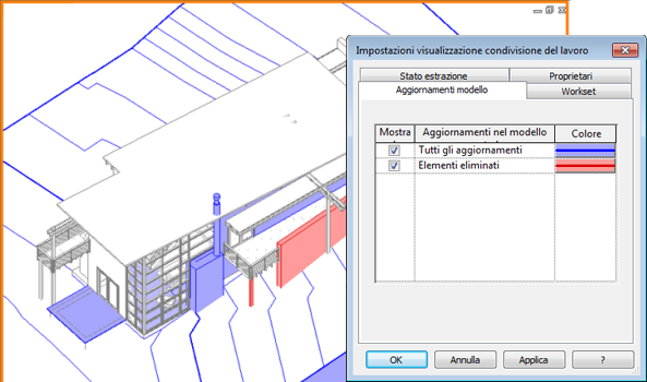Aggiornamenti modello. Gli elementi aggiornati vengono visualizzati nel modello.