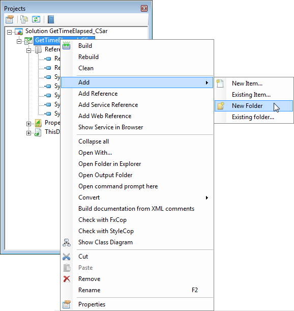 In questo esempio, nella schermata aggiornata di Esplora progetti di IDE per GetTimeElapsed_CSharp è presente quanto segue: