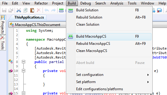 - In Revit macro IDE, selezionare l'opzione di creazione specifica delle macro dal menu a discesa.