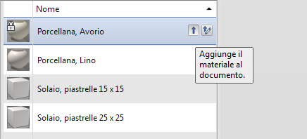 Per aggiungere un materiale al progetto corrente, individuare il materiale in una libreria esistente, quindi utilizzare uno dei seguenti metodi: