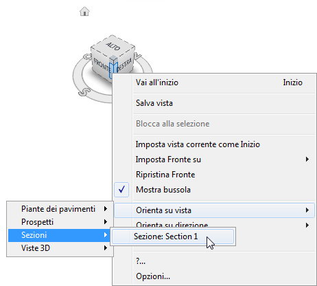 È possibile utilizzare il ViewCube per modificare l'orientamento di una vista in base a qualsiasi vista di pianta, di prospetto, di sezione o 3D del progetto.