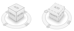 Quando si visualizza un modello in base ad una delle facce dello strumento, vengono visualizzate due frecce di rotazione accanto al ViewCube. Utilizzare le frecce di rotazione per ruotare la vista corrente di 90 gradi in senso orario o in senso antiorario rispetto al centro della vista.