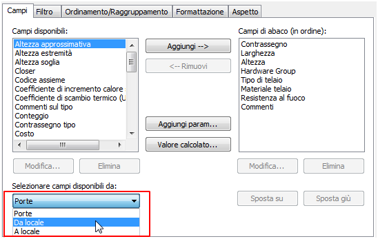 Come includere informazioni sul locale in un abaco delle porte