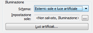 Per definire nuove impostazioni di sole e ombra per l'immagine di rendering, fare clic su
