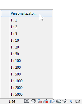 - Nella barra dei controlli della vista, fare clic sulla scala della vista e selezionare Personalizzato.