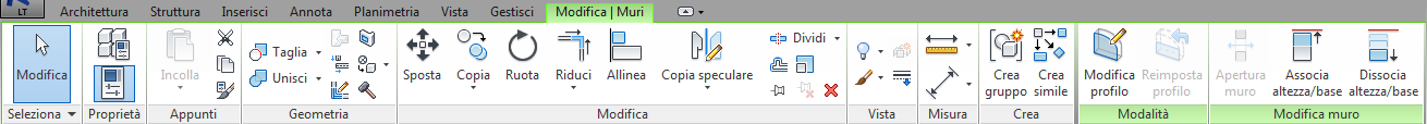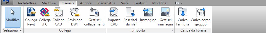 La barra multifunzione viene visualizzata quando si crea o si apre un file e fornisce accesso a tutti gli strumenti necessari alla creazione di un progetto o di una famiglia.