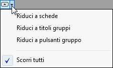 | specificare il metodo preferito per ridurre la barra multifunzione | a destra delle schede della barra multifunzione, fare clic sulla freccia a destra e selezionare l'opzione desiderata: Riduci a schede, Riduci a titoli gruppi, Riduci a pulsanti gruppi o Scorri tutte le opzioni. ![]() |