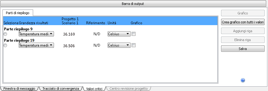 Visualizzare la tabella risultati nella scheda Valori critici della barra Output