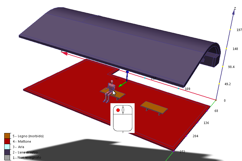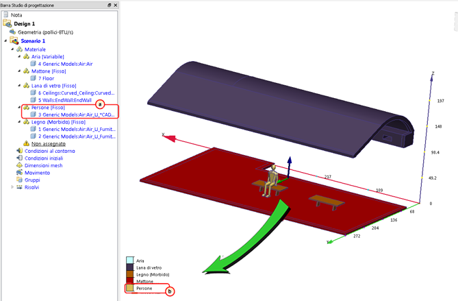 In questa fase all'occupante verrà assegnato un materiale in grado di simulare le proprietà termiche e fisiche di un corpo umano. Il database materiali installato di default non contiene un materiale "corpo umano". Pertanto, verrà utilizzato il silicone, un materiale molto simile. Un approccio più rigoroso richiederebbe la creazione di un materiale dotato delle reali proprietà del corpo umano da aggiungere a un database materiali personalizzato.